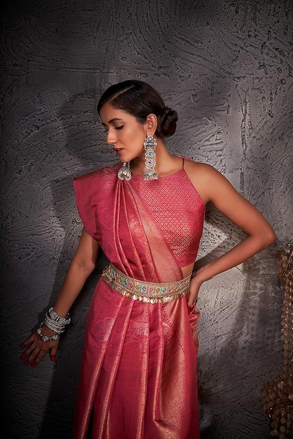 Yashika Women's Trendy Banarasi Kanjivaram Navy Color Art Silk Saree with Blouse Material